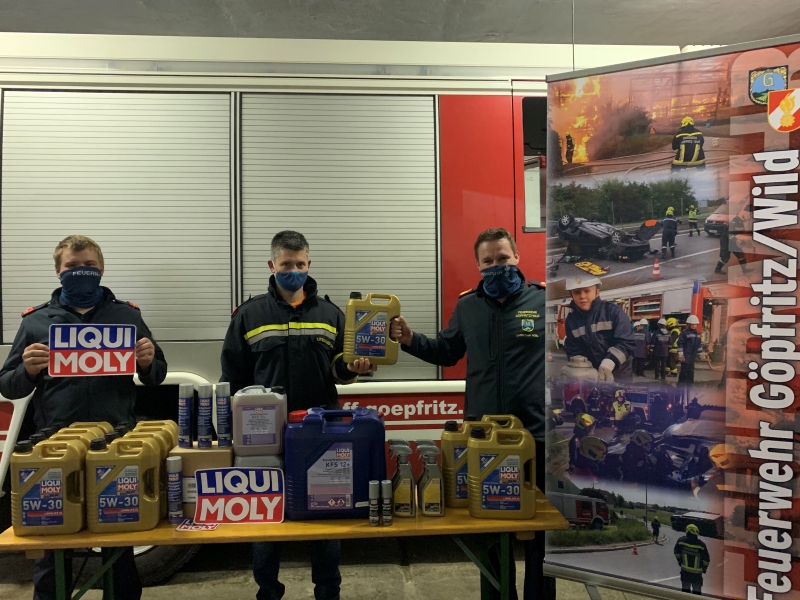 Göpfritz/Wild - Am 23. Oktober 2020 konnten FKDT BR Christian Hübl und FKDTSTV OBI Franz Steinbauer an unser Fahrmeisterteam allen voran Fahrmeister LM Chistoph Litschauer mehrere Produkte der Firma Liqui Moly überreichen.