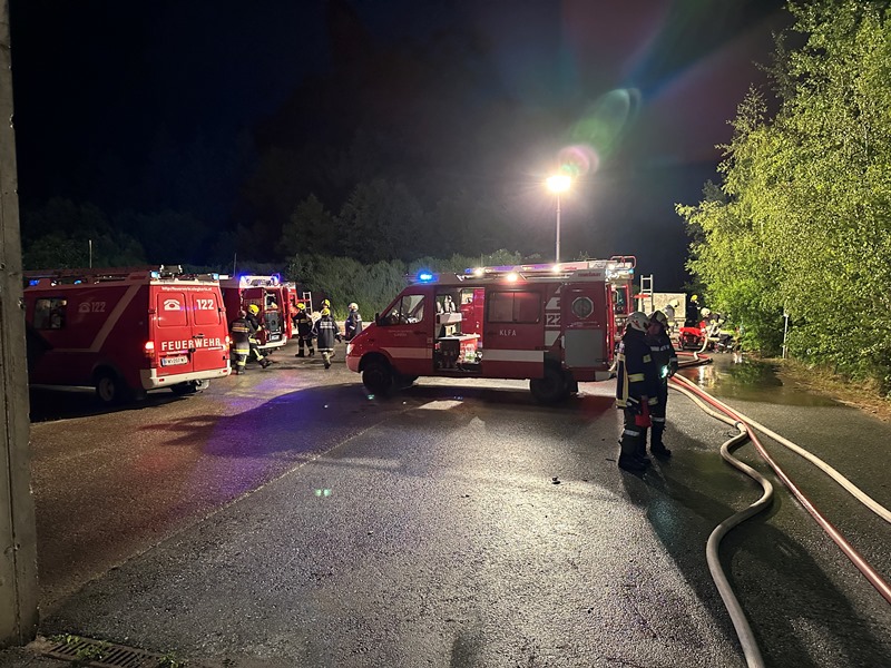 Breitenfeld - Die Freiwillige Feuerwehr Göpfritz/Wild wurde am 3. Juni 2024 um 22:17 Uhr zu einem Brand eines Gewerbebetriebs in der KG Breitenfeld alarmiert.