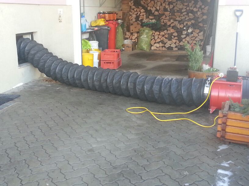 Beim Einsatzort angekommen rüstete sich sofort ein Atemschutztrupp aus, damit man den Heizraum näher begutachten und etwaige Brandherde ausfindig machen konnte. Nachdem keine unmittelbare Ursache für den Rauchaustritt gefunden werden konnte, wurde das Be- und Entlüftungsgerät - unseres RLFA 2000 - in Stellung gebracht, womit man den Rauch aus dem Keller absaugte. Durch den Atemschutztrupp wurde in weiterer Folge die heiße Asche aus dem Ofen entfernt.![]()