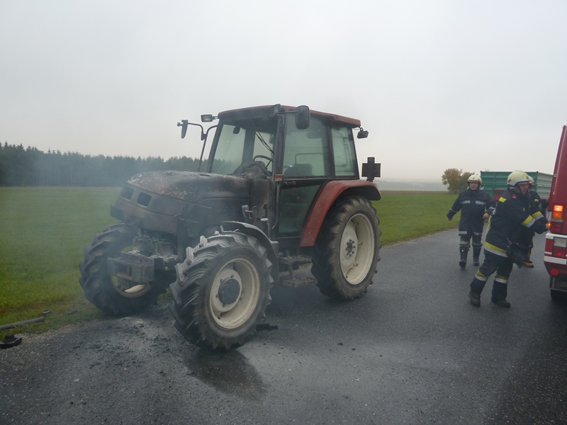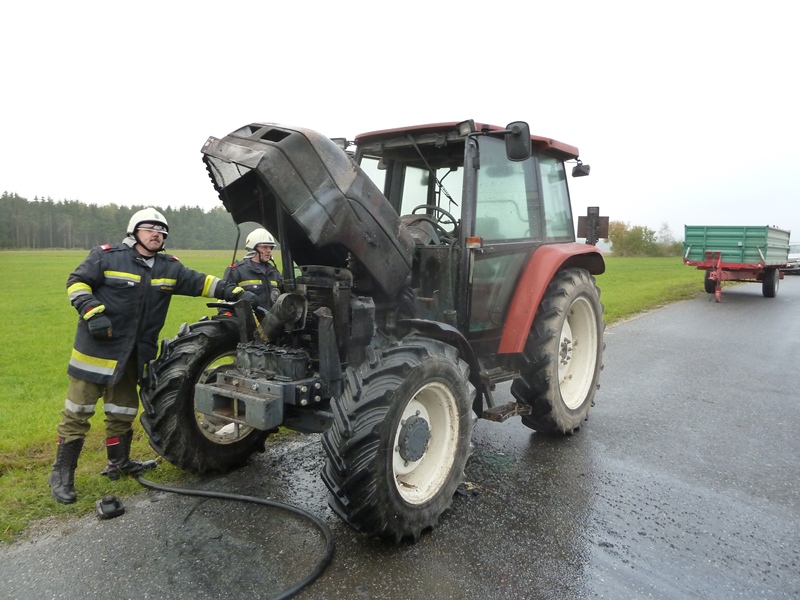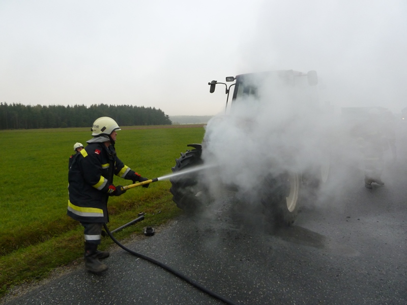 Ein Traktor geriet während der Fahrt aus bisher unbekannter Ursache in Brand - der Lenker verständigte via Notruf die Feuerwehr und konnte den Anhänger noch abkuppeln und sich selber in Sicherheit bringen.