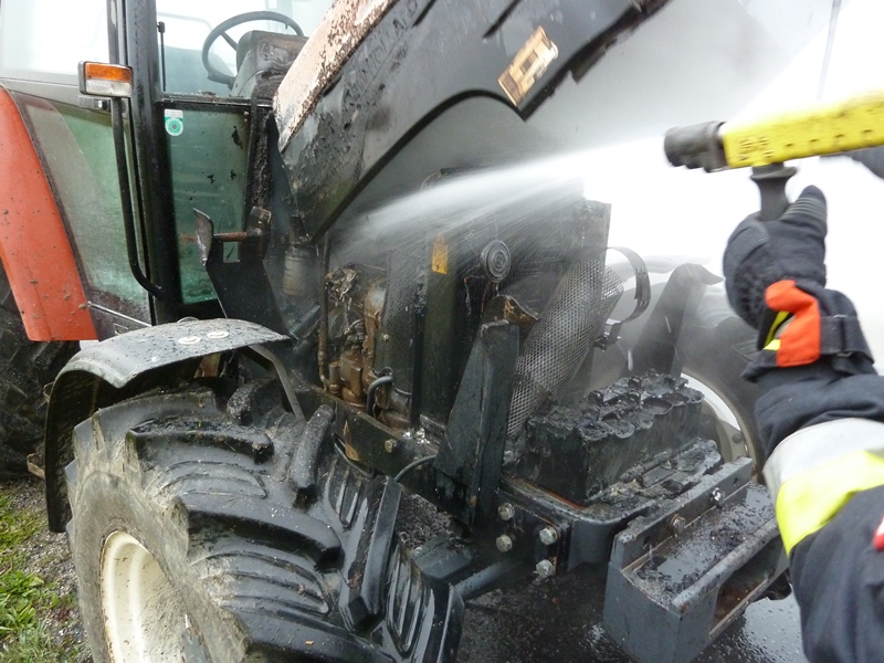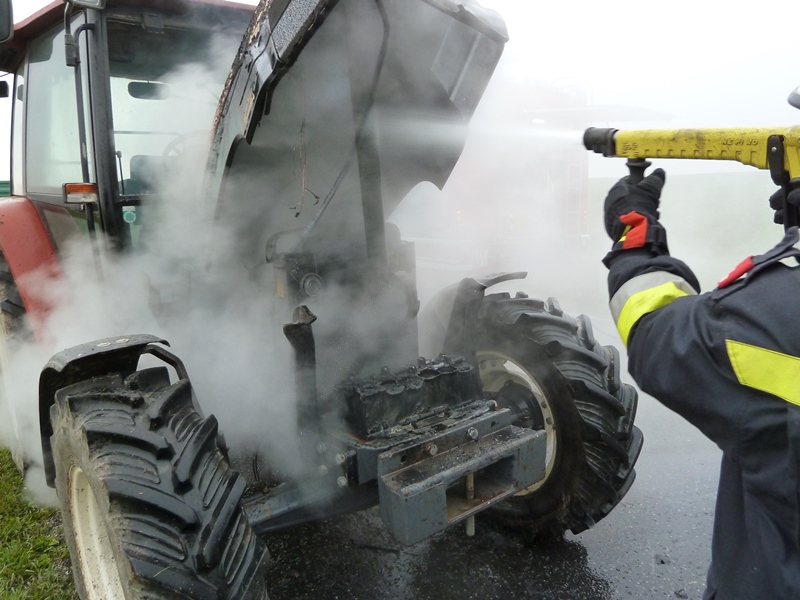 Glücklicherweise konnte der Brand bis zum Eintreffen der Einsatzkräfte mit einem Feuerlöscher, eines zufällig vorbeikommenden Tankwagens, in Schach gehalten werden bzw. ein Vollbrand des Traktors verhindert werden.