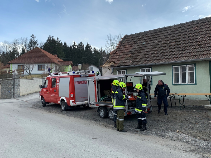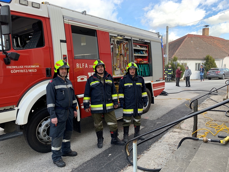 Bereits drei Minuten nach der Alarmierung rückten die ersten der insgesamt 25 eingesetzten Mitglieder der Freiwilligen Feuerwehr Göpfritz/Wild mit RLFA 2000, LFA, KDOF und MTF/VF sowie dem Atemluftanhänger und der Wärmebildkamera zur angegebenen Einsatzadresse in Scheideldorf aus.