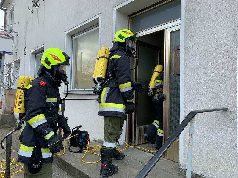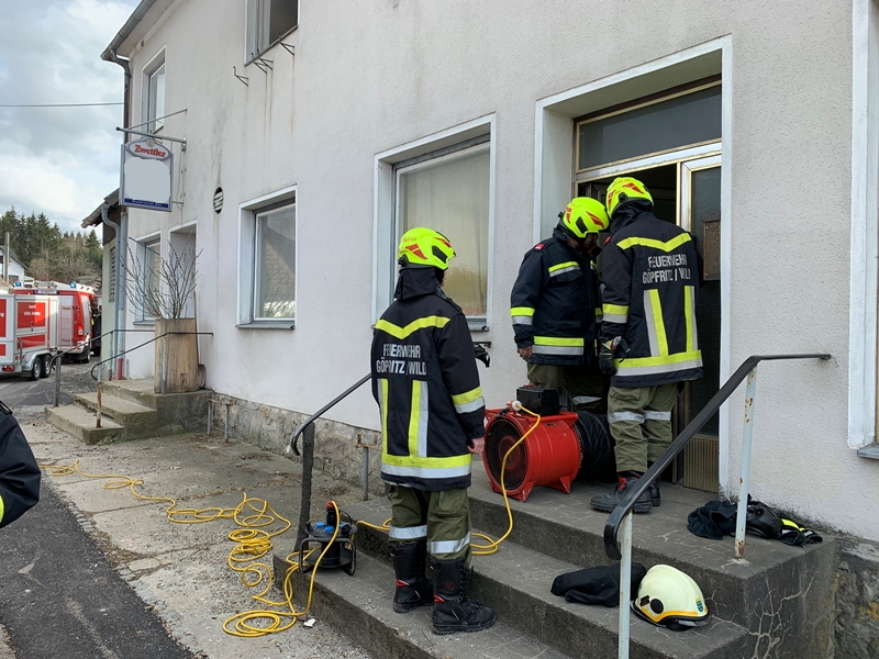 In weiterer Folge begab sich der Atemschutztrupp Göpfritz 1 in das verrauchte Gebäude um die Räume zu kontrollieren und die Fenster zu öffnen - dadurch konnte ein Großteil des Brandrauches aus dem Gebäude abziehen - unterstützend wurde durch die Besatzung des RLFA Göpfritz auch mit dem Aufbau des Be- und Entlüfutngsgerätes begonnen, um damit auch den restlichen Rauch aus dem Gebäude zu bekommen. Das LFA wurde vom Einsatzleiter mit der Errichtung und dem Betrieb des Atemschutzsammelplatzes beauftragt, um in weiterer Folge die eingesetzten Atemluftflaschen wieder befüllen zu können.
