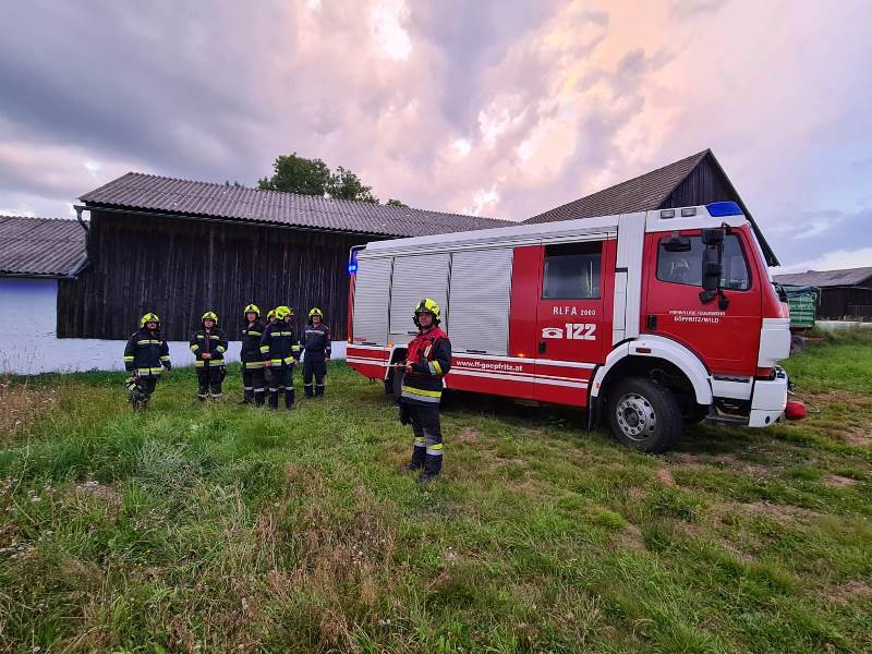 Als die ersten Einsatzkräfte aus Göpfritz/Wild am Einsatzort eintrafen, war der Brand bereits weitgehend gelöscht. Daher bestand der Auftrag für die Besatzung des RLFA 2000 und den bereits vollständig ausgerüsteten Atemschutztrupp als Einsatzreserve vor Ort zu bleiben.