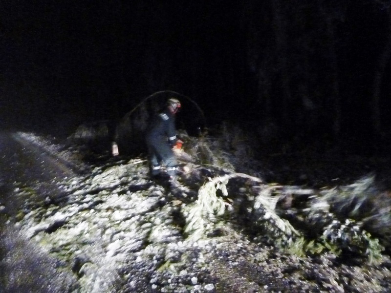 Baum über Straße auf der LB2Göpfritz/Wild - Die Freiwillige Feuerwehr Göpfritz wurde in der Nacht von Dienstag, dem 2. Dezember 2014 auf Mittwoch, dem 3. Dezember 2014 mehrmals zu Einsätzen auf der LB2 im Bereich der Wild gerufen.