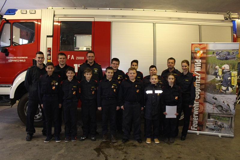 Erfolgreiche Absolvierung des Fertigkeitsabzeichen Melder & Melder SpielFertigkeitsabzeichen Melder Göpfritz/Wild - Am 16. Jänner 2016 wurde für die Feuerwehrjugendmitglieder der Feuerwehr Göpfritz/Wild das Fertigkeitsabzeichen Melder und Melder Spiel durchgeführt. 10 Feuerwehrjugendmitglieder aus Göpfritz/Wild konnten bei diesen Prüfungen, nach langer und intensiver Vorbereitungen durch Jugendbetreuerin SB Jennifer Bauer und ihrem Team, ihr Können beweisen und somit das Abzeichen für das Fertigkeitsabzeichen Melder und Melder-Spiel erwerben.