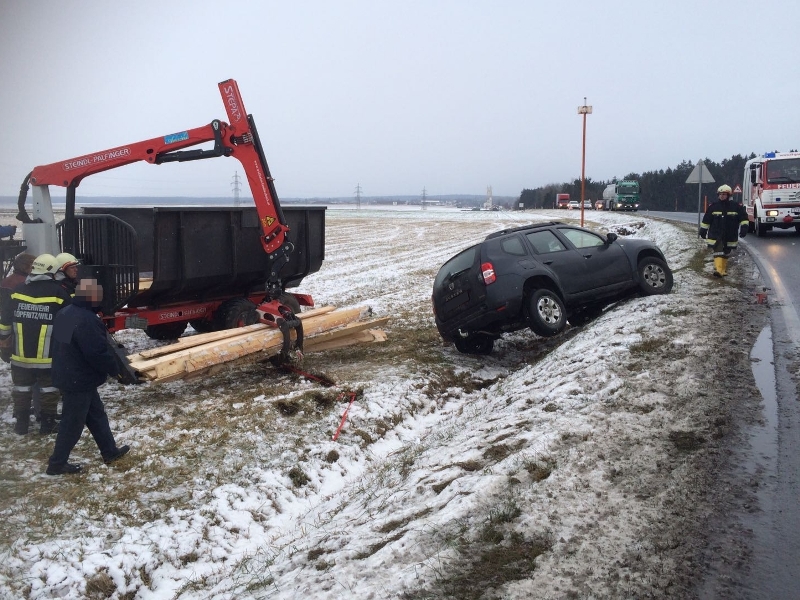 Aus bisher unbekannter Ursache geriet ein Fahrzeuglenker mit seinem PKW samt Anhänger in den Straßengraben und kam darin zum Stillstand.