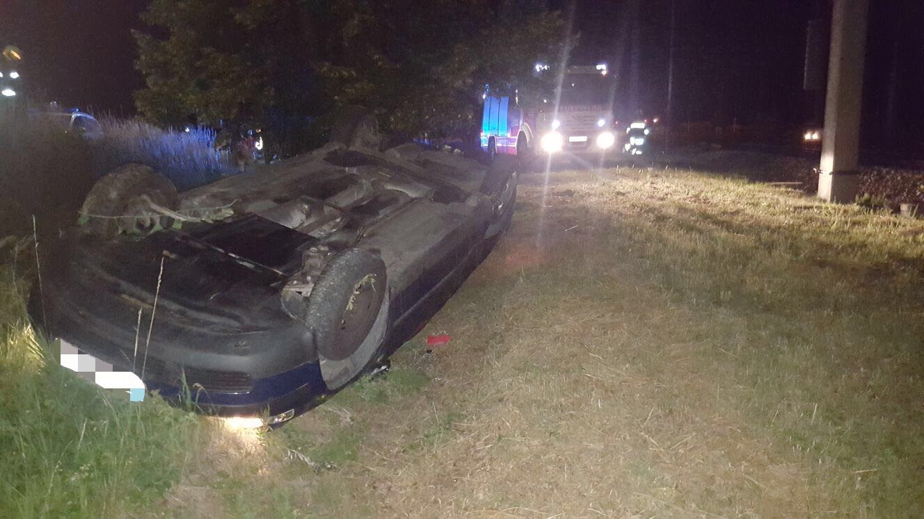 Ein Fahrzeug ist aus bisher unbekannter Ursache von der Fahrbahn abgekommen, hat sich anschließend überschlagen und blieb auf dem Dach liegen.