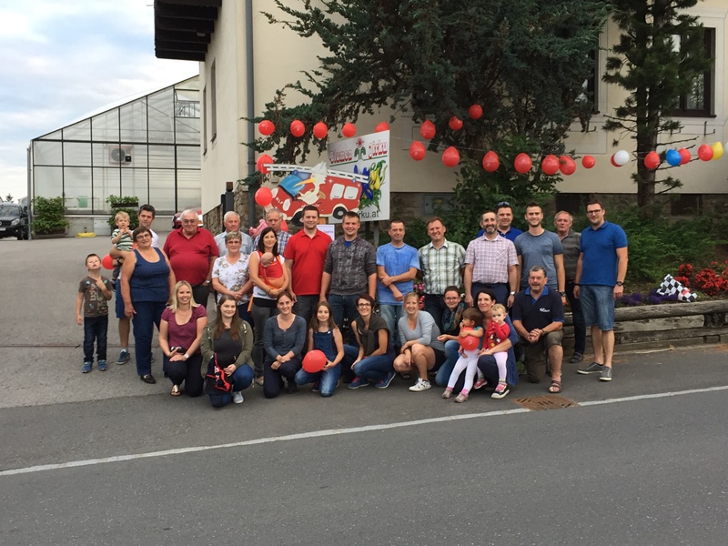 Aus diesem Grund rückten die Mitglieder der Feuerwehr Göpfritz/Wild besonders erfreut am Abend des 4. Juli 2017 zu einem "Einsatz" der besonderen Art aus und überbrachten ihre Glückwünsche symbolisch mit einem Storch, welcher im Garten vor dem Haus aufgestellt wurde.