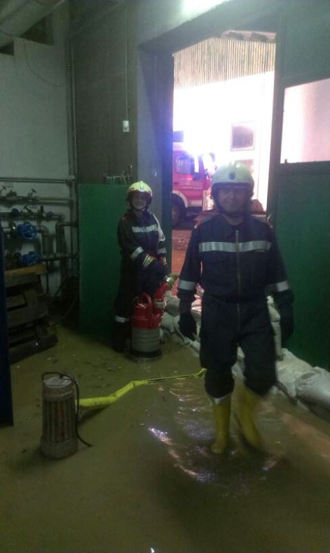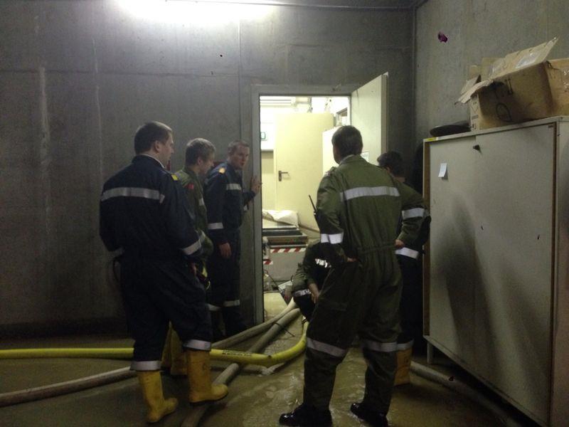 HBI Werner Schatzko (FF Allentsteig) erteilte als örtlich zuständiger Einsatzleiter den eingesetzen Feuerwehrkräften aus Göpfritz den Einsatzbefehl - es galt unsere mitgeführten Unterwasserpumpen im Heizwerk in Stellung zu bringen um einen weiteren Anstieg des Wasserpegels im Heizwerk zu verhindern, bzw. um das eingedrungene Wasser abzupumpen.
