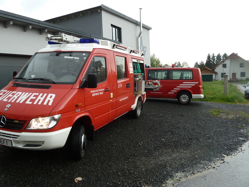 Aufgrund des starken Gewitters, das auch heftige Regenfälle mitführte, wurde ein Garten in Göpfritz überflutet. Durch den Umstand, dass die Einsatzkräfte aus Göpfritz auf der Heimfahrt der vermutlichen Fahrzeugbergung auf der LB2 war, konnten sich die Mitglieder unverzüglich zur Einsatzadresse in Göpfritz begeben.