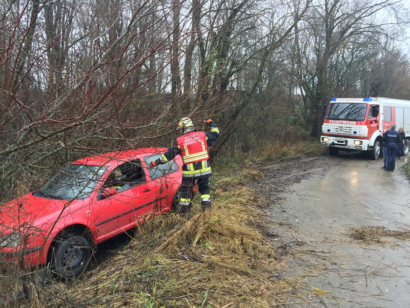 Aus bisher unbekannter Ursache geriet ein Fahrzeuglenker mit seinem PKW in den Straßengraben und kam darin zum Stillstand.