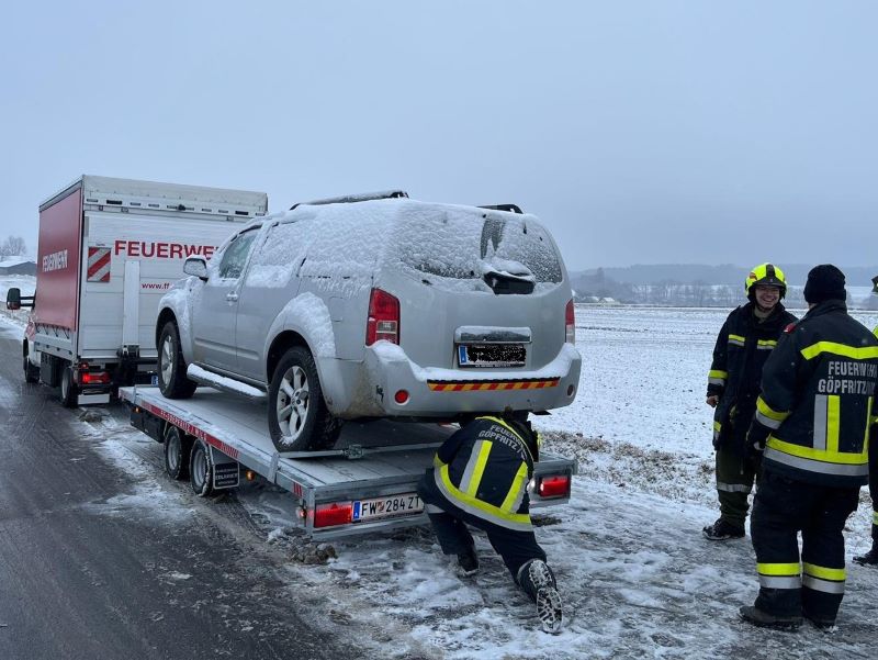 Fahrzeugbergung auf der L8038Göpfritz/Wild - Die Freiwillige Feuerwehr Göpfritz/Wild wurde am Mittwoch, den 12. Februar 2025 um 07:52 Uhr, mittels stillem Alarm zur Unterstützung der Feuerwehr Kirchberg-Schönfeld bei einer Fahrzeugbergung auf der L8038 zwischen Schönfeld und Breitenfeld alarmiert.