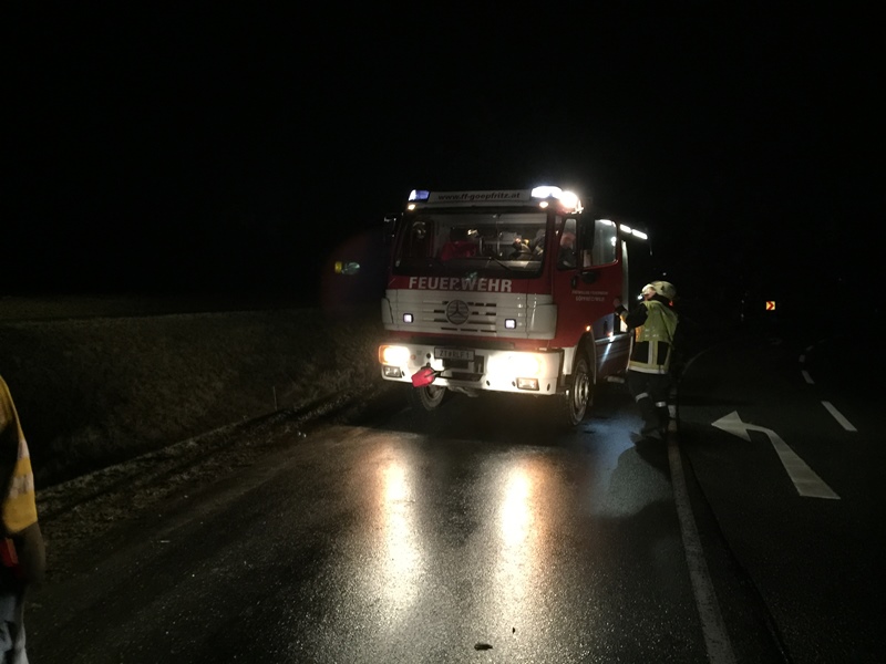 Göpfritz/Wild - Die Freiwillige Feuerwehr Göpfritz/Wild wurde am Sonntag, dem 25. Dezember 2016 um 23:10 Uhr, durch die Polizei zu einer Fahrzeugbergung auf der LB2 Richtung Allwangspitz gerufen.