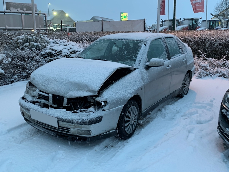 Aufgrund der schneebedeckten Fahrbahn und der damit verbundenen Straßenglätte kam es zu einem Auffahrunfall zwischen zwei Fahrzeugen, wobei ein Fahrzeug stark beschädigt auf der Fahrbahn stehen blieb.