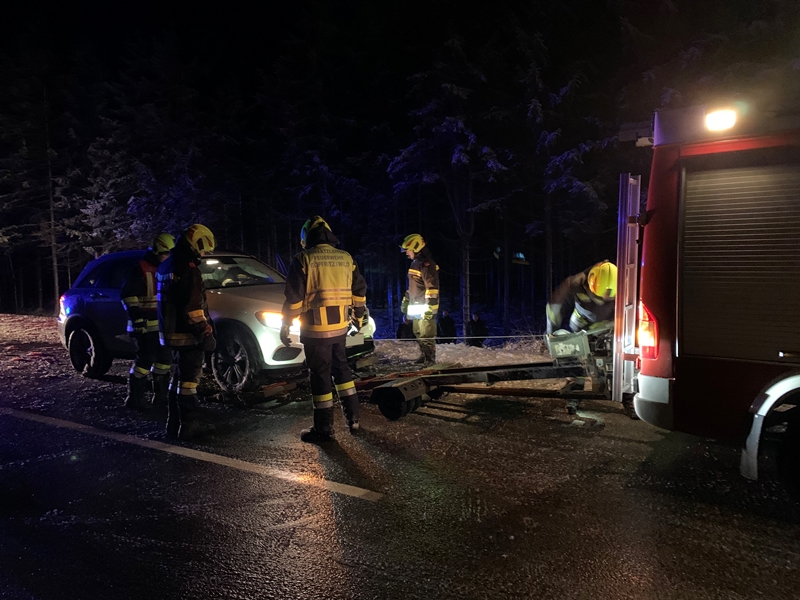 Göpfritz/Wild - Die Freiwillige Feuerwehr Göpfritz/Wild wurde am Mittwoch, den 12. Februar 2020 um 04:45 Uhr von der Landeswarnzentrale mittels stillem Alarm zu einer Fahrzeugbergung auf der LB2 in der Wild alarmiert.