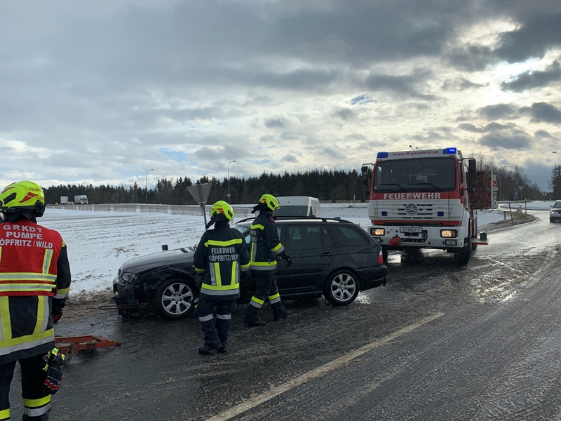 Fahrzeugbergung auf der LB2 vor dem KreisverkehrGöpfritz/Wild - Die Freiwillige Feuerwehr Göpfritz/Wild wurde am Dienstag, dem 15. Jänner 2019 um 13:47 Uhr, zu einer Fahrzeugbergung auf der LB2 kurz vor dem Kreisverkehr Allwangspitz alarmiert.