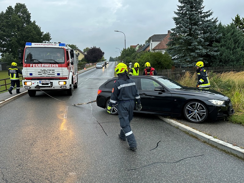 Göpfritz/Wild - Die Freiwillige Feuerwehr Göpfritz/Wild wurde am 14. September 2023 um 06:27 Uhr zu einer PKW-Bergung auf der Raabserstraße kurz nach der Eisenbahnbrücke im Bereich der Bushaltestelle alarmiert.