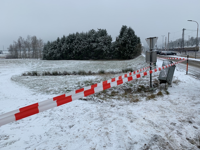 Die Einsatzkräfte sicherten währenddessen die Einsatzstelle ab und bereiteten alle erforderlichen Maßnahmen für die Fahrzeugbergung vor. Nach der Bergung des Fahrzeuges mittels der Seilwinde des RLFA, konnte das Unfallfahrzeug von der Einsatzstelle verbracht werden. In weiterer Folge wurde in Absprache mit der Polizei der Bereich rund um den Verteilerkasten mit einem Absperrband abgesperrt, damit bis zum Eintreffen der EVN niemand den betroffenen Bereich betritt.
