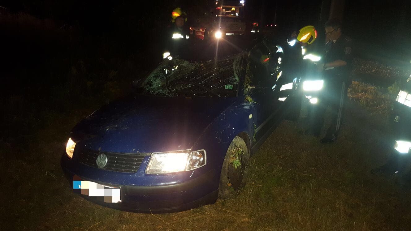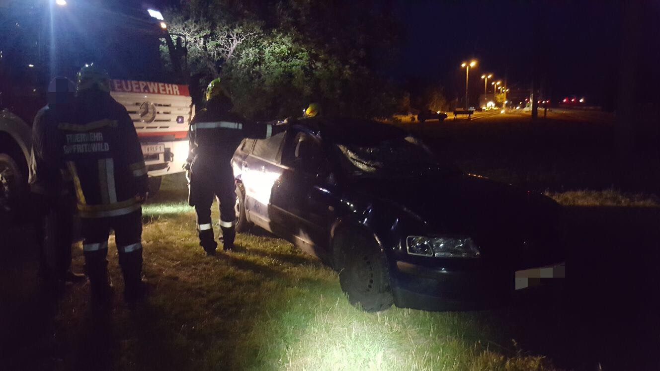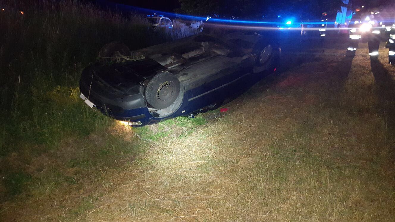 Ein Fahrzeug ist aus bisher unbekannter Ursache von der Fahrbahn abgekommen, hat sich anschließend überschlagen und blieb auf dem Dach liegen.