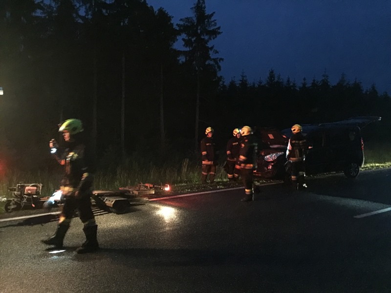 Ein Fahrzeug kollidierte kurz vor der Ausfahrt aus dem Waldgebiet "Wild" mit einem Reh, wobei das Fahrzeug derart beschädigt wurde, dass keine Weiterfahrt mehr möglich war.