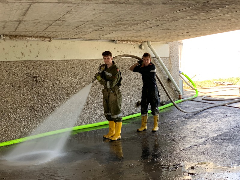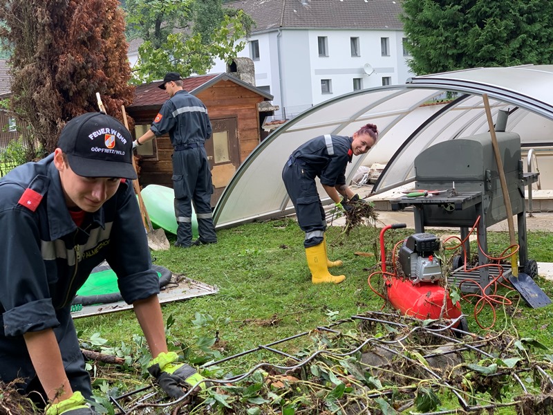 Nach dem Eintreffen im Einsatzgebiet konnte bereits um 08.15 Uhr die ersten Einsatzaufträge angenommen und abgearbeitet werden. Die eingesetzen Einsatzkräfte aus Göpfritz/Wild unterstützten unter anderem mehrere Eigentümer bei den Aufräumarbeiten nach dem in deren Umkreis Bäche und Flüsse über die Ufer getreten waren. Ebenso musste die erheblichen Verschmutzungen am Gelände der "Messe Wieselburg" beseitigt werden.
