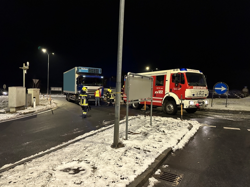 Ein vollbeladener LKW kam aufgrund eines technischen Defektes mitten im Kreisverkehr zu Stehen und konnte diesen selbstständig nicht mehr verlassen.