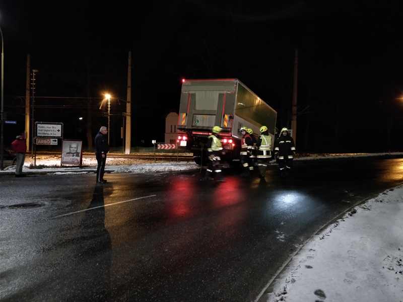 Göpfritz/Wild - Die Freiwillige Feuerwehr Göpfritz/Wild wurde am 19. Jänner 2018 um 19:17 Uhr, von Florian Zwettl mittels Stillem Alarm zu einer LKW-Bergung auf der Kreuzung Raabserstraße/Bahnhofsstraße alarmiert.
