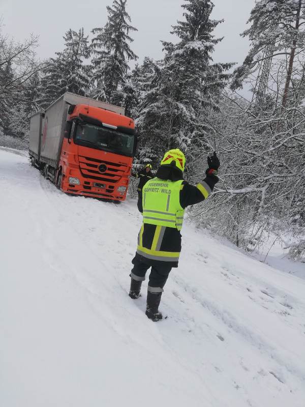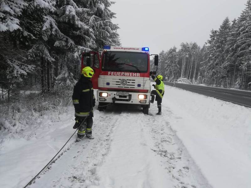 Göpfritz/Wild - Die Freiwillige Feuerwehr Göpfritz/Wild wurde am Donnerstag, dem 13. Dezember 2018 um 10:57 Uhr, von Florian Niederösterreich mittels Stillem Alarm zum bereits dritten Einsatz innerhalb von 4 Tagen - einer LKW-Bergung auf der LB2 in der Wild - alarmiert.