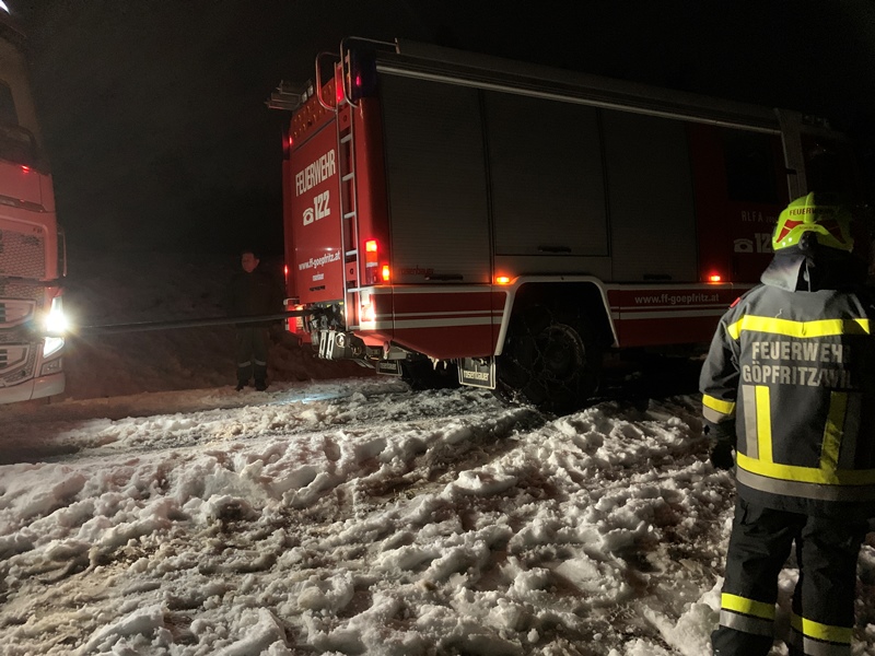 Göpfritz/Wild - Die Freiwillige Feuerwehr Göpfritz/Wild wurde am Freitag, den 03. Februar 2023 um 19:27 Uhr, zu einer LKW-Bergung auf der LB2 in der Wild alarmiert.