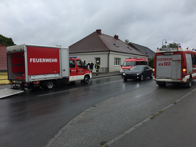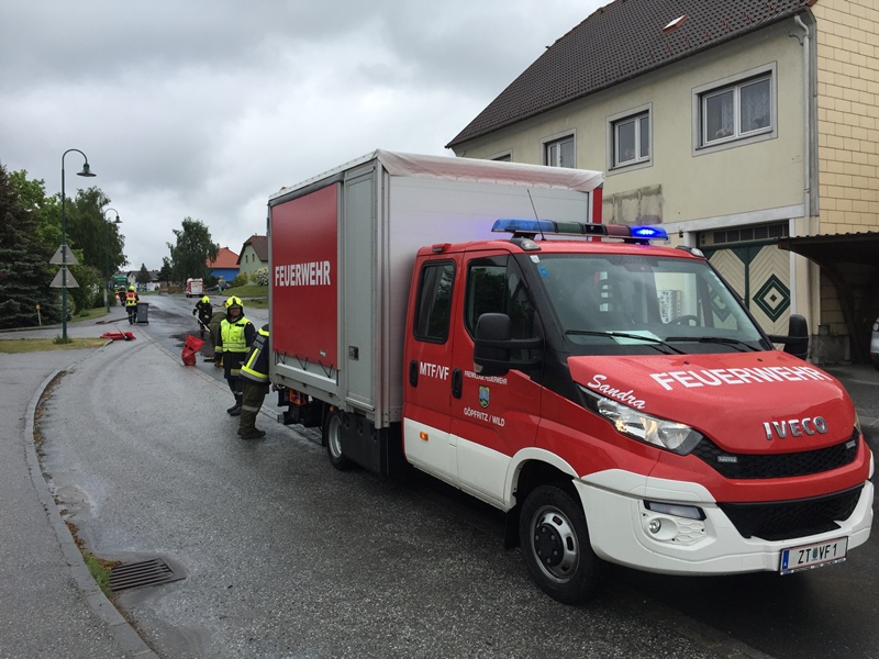 Unter der Einsatzleitung von OBI Franz Steinbauer konnten bereits fünf Minuten nach der Alarmierung insgesamt 15 Mitglieder der Freiwilligen Feuerwehr Göpfritz/Wild mit dem RLFA 2000, KDOF und dem MTF/VF zur angegebenen Einsatzadresse ausrücken.