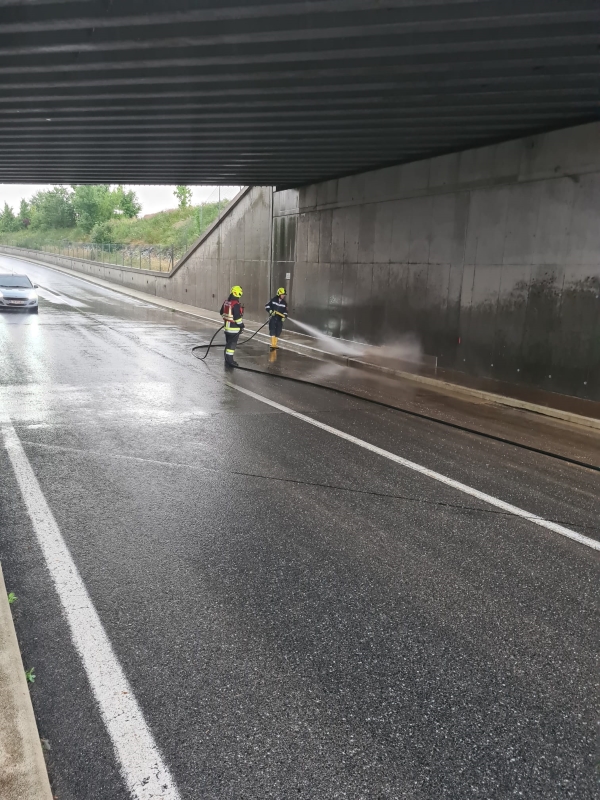 Heftige Regenfälle führten zu mehreren Auspumparbeiten, ebenso wurde dadurch die Unterführung der LB2 überflutet und verschmutzt. Während dieser Arbeiten blockierte ein nicht mehr fahrfähiges Fahrzeug die Fahrbahn auf der LB2 und musste entfernt werden.