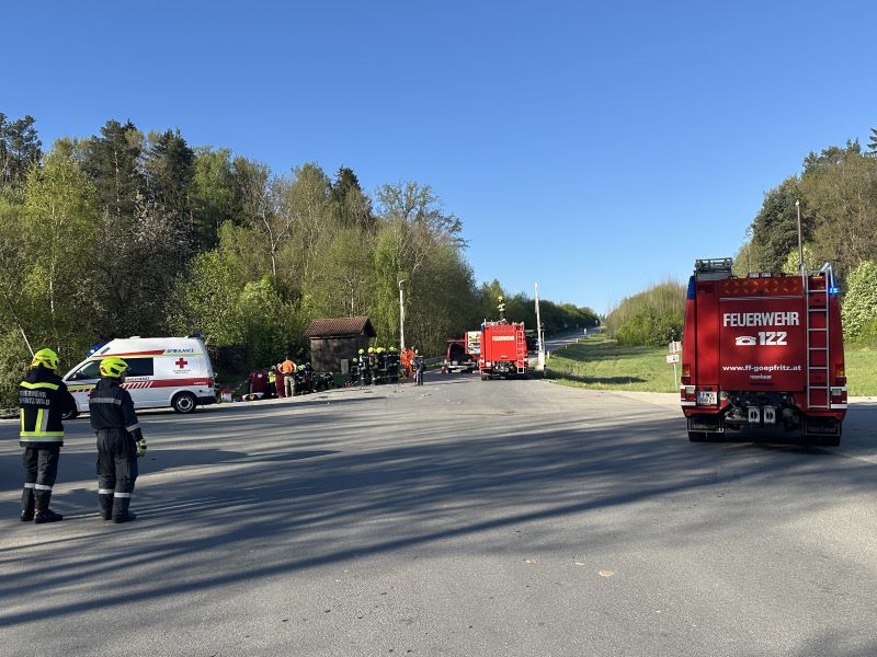Göpfritz/Wild - Die Freiwillige Feuerwehr Göpfritz/Wild wurde am 2. Mai 2025 um 07:24 Uhr zu einem Verkehrsunfall mit Menschenrettung auf der L75 im Gemeindegebiet von Allentsteig alarmiert.