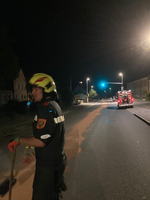 Göpfritz/Wild - Die Freiwillige Feuerwehr Göpfritz/Wild wurde am Montag, dem 17. Juli 2023 um 22.24 Uhr von Florian Niederösterreich mittels stillem Alarm zu einer Ölspur auf der LB2 / Hauptstraße alarmiert.