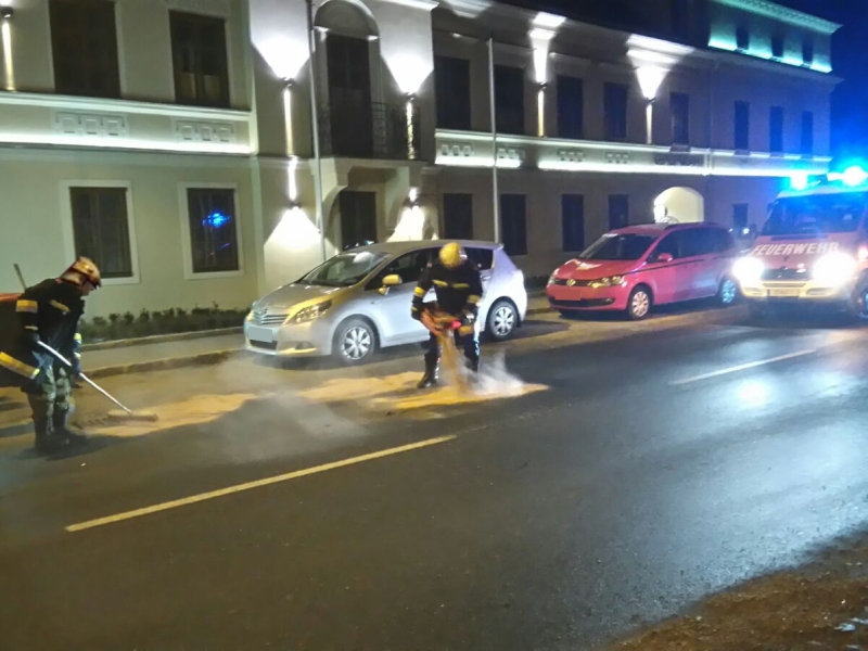 Nach einem Auffahrunfall zweier PKWs flossen Betriebsstoffe aus, weshalb ein Fahrzeuglenker die Feuerwehr mittels Notruf alarmierte.