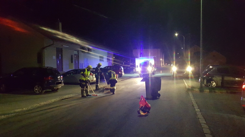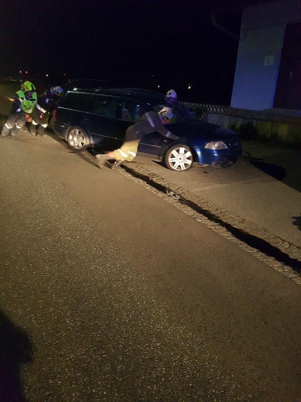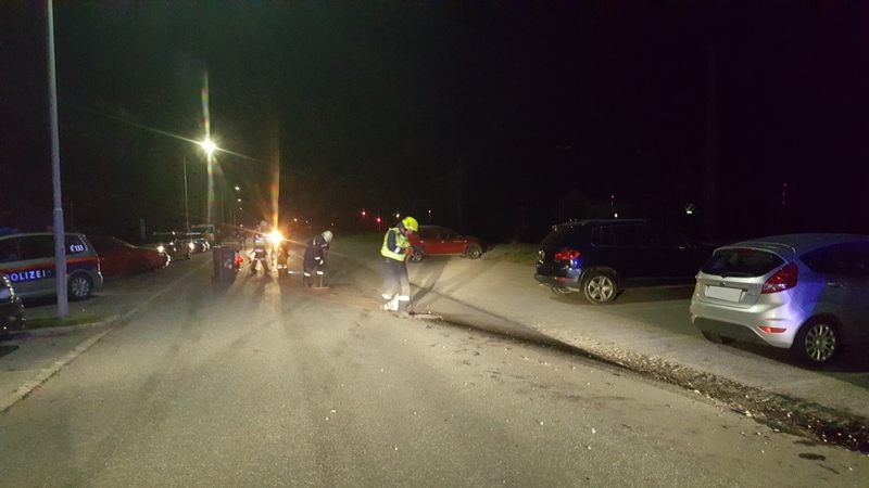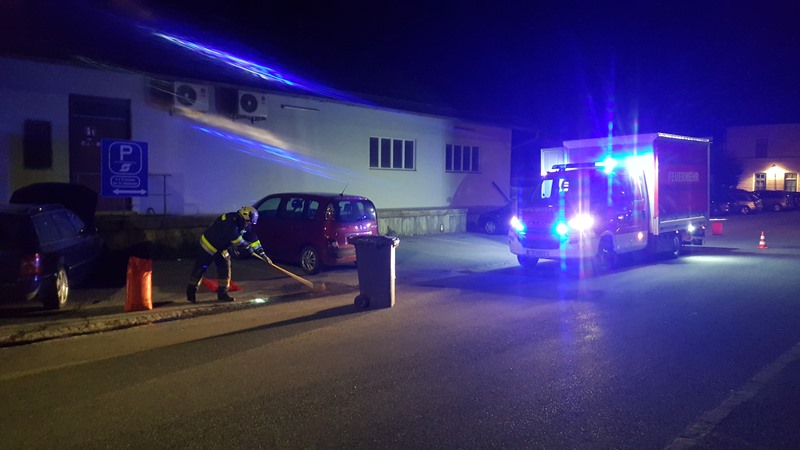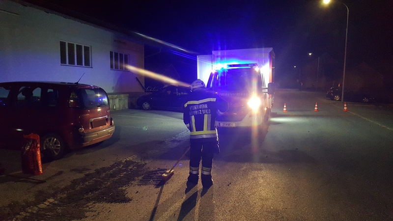 Nach einem Verkehrsunfall eines PKWs flossen Betriebsstoffe aus, weshalb die Feuerwehr ausrückte, um die Betriebsstroffe zu binden.
