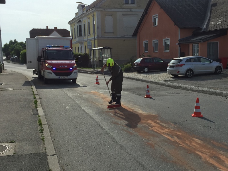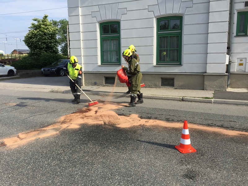 Nach dem Eintreffen an der Einsatzstelle wurde diese sofort abgesichert. In weiterer Folge wurden die ausgetretenen Betriebsstoffe mittels Ölbindemittel gebunden und anschließend die Straße gereinigt. Während der Arbeiten wurde durch den Einsatzleiter die zuständige Straßenmeisterei Raabs/Thaya informiert, die für die Kennzeichnung des betroffenen Fahrbahnabschnittes mit entsprechenden Hinweisschildern "Achtung Ölspur" zuständig ist.