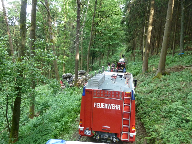 Ein Forstarbeiter ist bei Holzschlägerungsarbeiten im steilen Gelände mit seinem Traktor verunglückt und wurde unter dem Fahrzeug eingeklemmt.