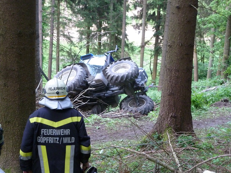 Nachdem der Verletzte, mit Verletzungen unbekannten Grades, mit dem Notarzthubschrauber Christophorus 2 in das Landesklinikum Horn abtransportiert wurde, konnten die Feuerwehren Göpfritz/Wild und Allentsteig mit der Bergung des Traktors beginnen.