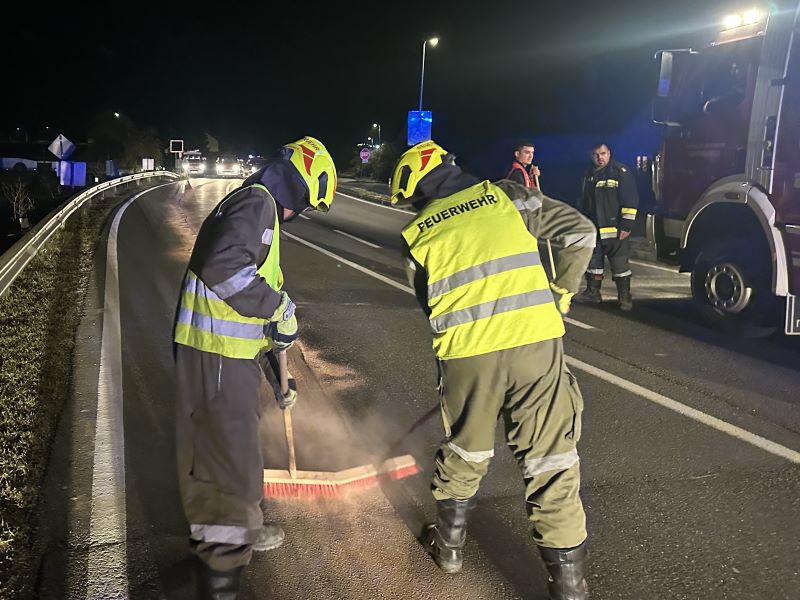 Aus bisher unbekannter Ursache erstreckte sich auf der LB2 ab der "Wild" bis zur Staatsgrenze (Bereich Neunagelberg), auf einer Strecke von über 30 Kilometern, eine Treibstoffspur, welche zusätzlich zur Umweltverschmutzung auch eine massive Gefährdung für den Verkehr auf diesem Straßenabschnitt darstellte.