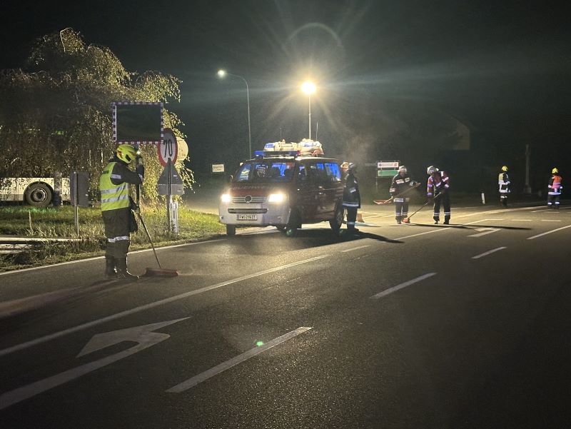Um ca. 23.30 Uhr waren sämtliche Reinigungsmaßnahmen erledigt und die Einsatzkräfte konnten, nach Rücksprache mit dem Straßenerhalter und der Polizei wieder ins Feuerwehrhaus einrücken und die Einsatzbereitschaft wiederherstellen.