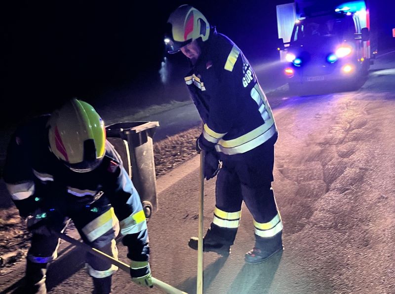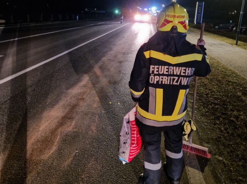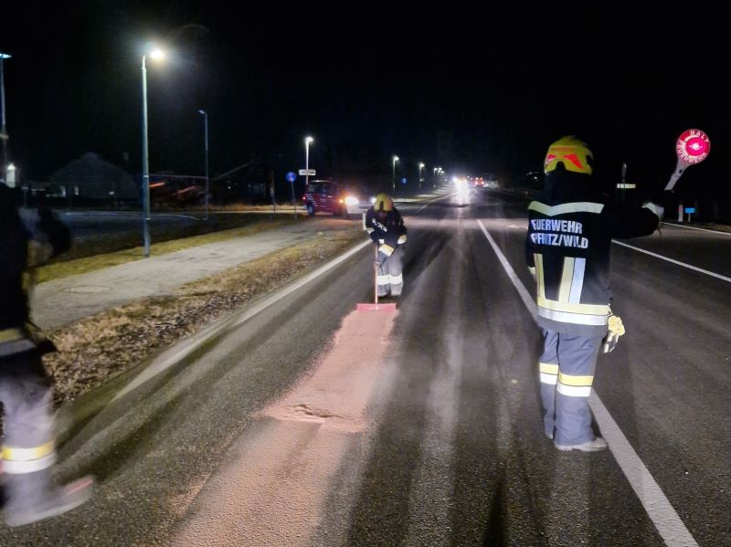 Göpfritz/Wild - Die Freiwillige Feuerwehr Göpfritz/Wild wurde am 24. März 2025 um 18.36 Uhr von der Straßenmeisterei Allentsteig zur Unterstützung bei der Beseitigung einer massiven Ölspur auf der LB2/Hauptstraße gerufen.