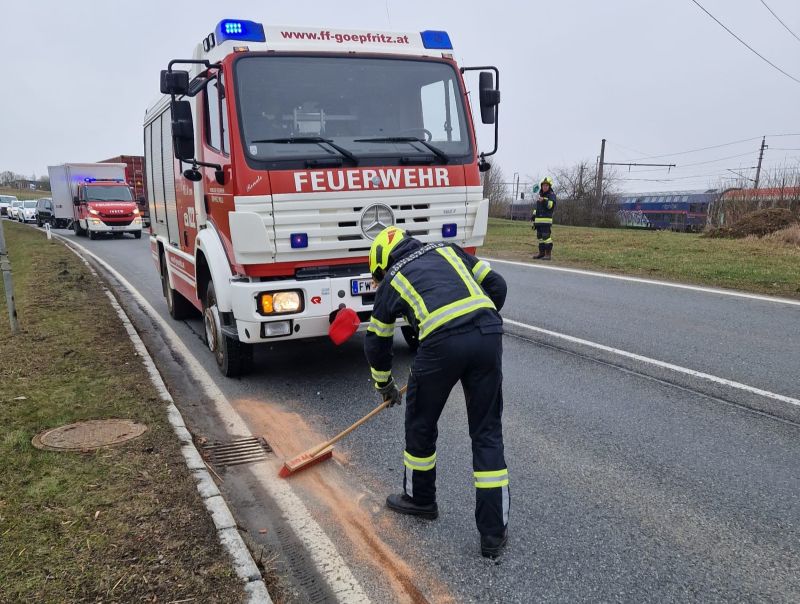 Göpfritz/Wild - Die Freiwillige Feuerwehr Göpfritz/Wild wurde am 30. März 2026 um 09:32 Uhr mittels stillem Alarm zu einem Schadstoffeinsatz (Betriebsmittelaustritt) auf der LB2 in Fahrtrichtung Scheideldorf (kurz nach der Bahnunterführung) alarmiert.