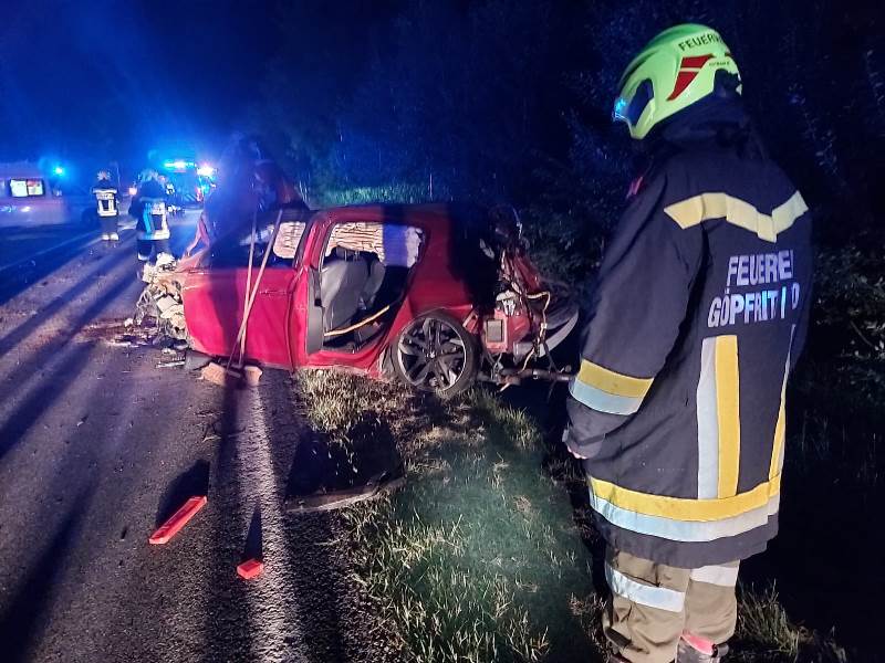 Schwerer Verkehrsunfall auf der LB2 am BrunnerbergSchwerer Verkehrsunfall auf der LB2 am BrunnerbergDie Bergung des total demolierten Fahrzeuges übernahmen die Kameraden der Feuerwehren Brunn/Wild und Horn mit dem WLFA Horn, weshalb keine weitere Unterstützung durch die Göpfritzer Einsatzkräfte notwendig war.