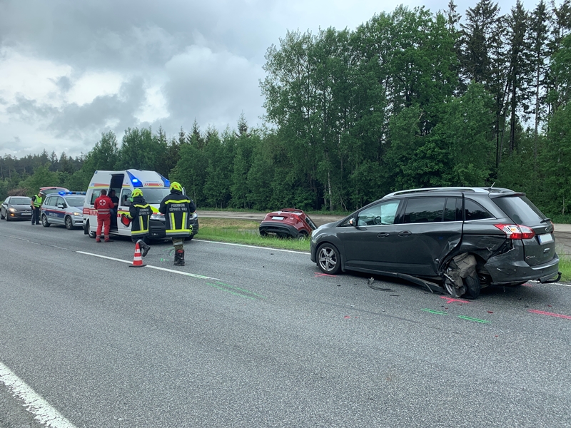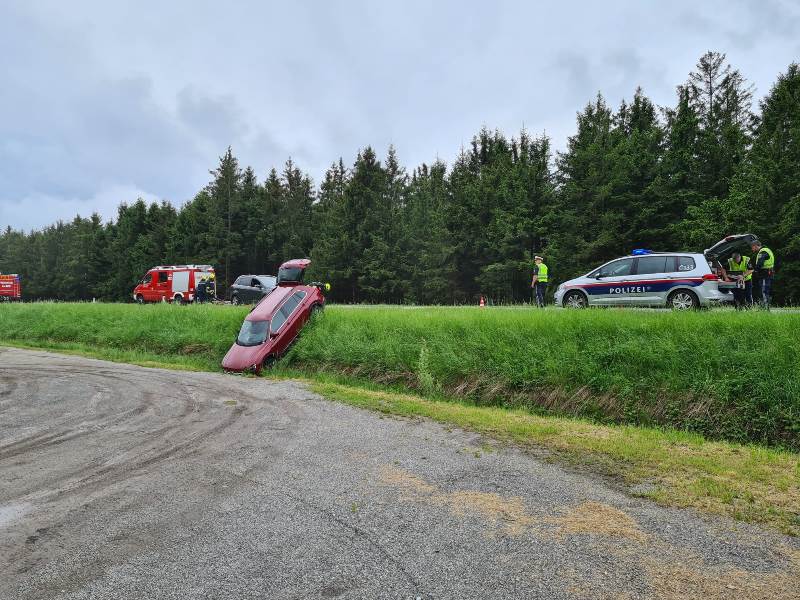 Ein PKW Lenker hat den vor ihm stockenden Verkehr übersehen und fuhr in Folge dessen dem letzten Fahrzeug der Kollone auf und landete anschließend mit dem Fahrzeug im Straßengraben, das andere Fahrzeug blieb völlig beschädigt auf der Fahrbahn stehen.