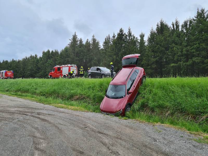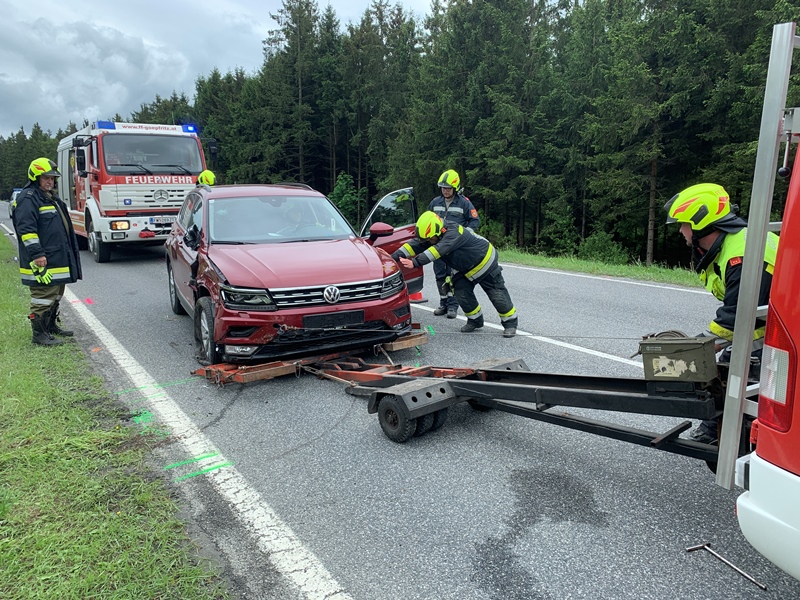 Beim Eintreffen an der Einsatzstelle konnte durch den Einsatzleiter festgestellt werden, dass die verletzten Personen durch den Rettungsdienst versorgt wurden. Nach der weiteren Absicherung der Unfallstelle und der Freigabe der Unfallstelle, durch die ebenfalls anwesende Polizei, wurde ein beschädigtes Fahrzeug auf die Abschleppachse verladen und von der Unfallstelle verbracht. Der zweite PKW wurde anschließend mittels Seilwinde des RLFA 2000 aus dem Straßgengraben gezogen und in weiterer Folge ebenfalls auf die Abschleppachse verladen und ebenfalls von der Unfallstelle verbracht.