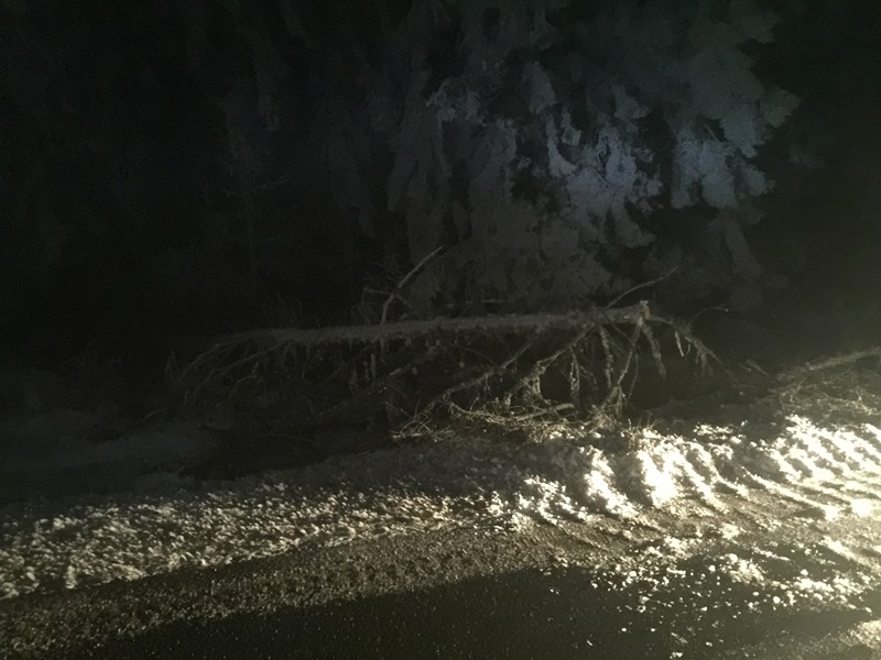 Laut ersten Meldungen stürtze ein Baum - aufgrund des starken Raureifes - auf die Fahrbahn und blockierte einen Fahrsteifen.