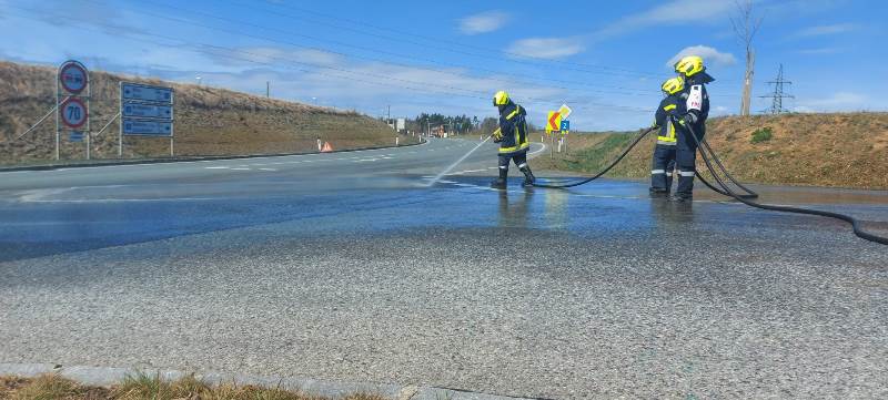 Beim Eintreffen an der Einsatzstelle erfolgte durch den Einsatzleiter eine Absprache mit den Beamten der ebenfalls bereits anwesenden Polizei, um die erforderlichen Arbeiten festzulegen. Nach der Absicherung der Einsatzstelle wurde der Verkehr im Kreuzungsbereich kurz angehalten um in weiterer Folge die Fahrbahn mittels HD-Strahlrohr reinigen zu können. Parallel dazu erfolgte eine weitere Erkundung durch das KDOF um mögliche weitere "Gülle-Austritte" auf der Fahrbahn zu orten - hier konnten allerdings keine weiteren Einsatzstellen ausgemacht werden.
