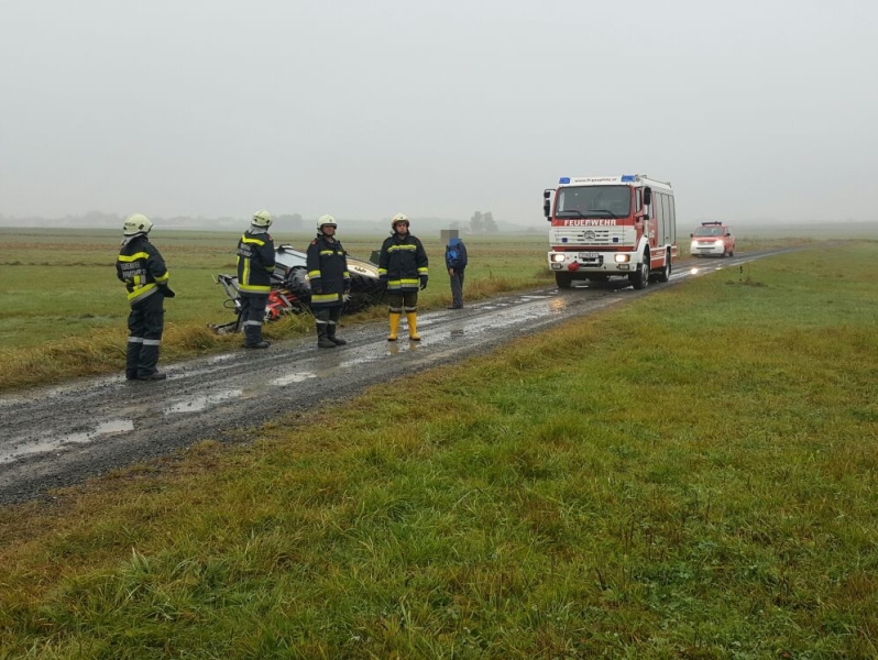 Der Lenker eines Traktors ist mit diesem vom Weg abgekommen und seitlich liegend im angrenzenden Straßengraben zum Stillstand gekommen, der Lenker blieb dabei unverletzt.