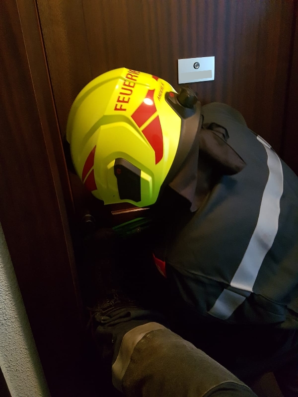 Eine Person hatte starke Schmerzen und konnte die Tür nicht mehr selbstständig öffnen, weshalb die Rettung die Feuerwehr zur Unterstützung bei der Turöffnung anforderte.